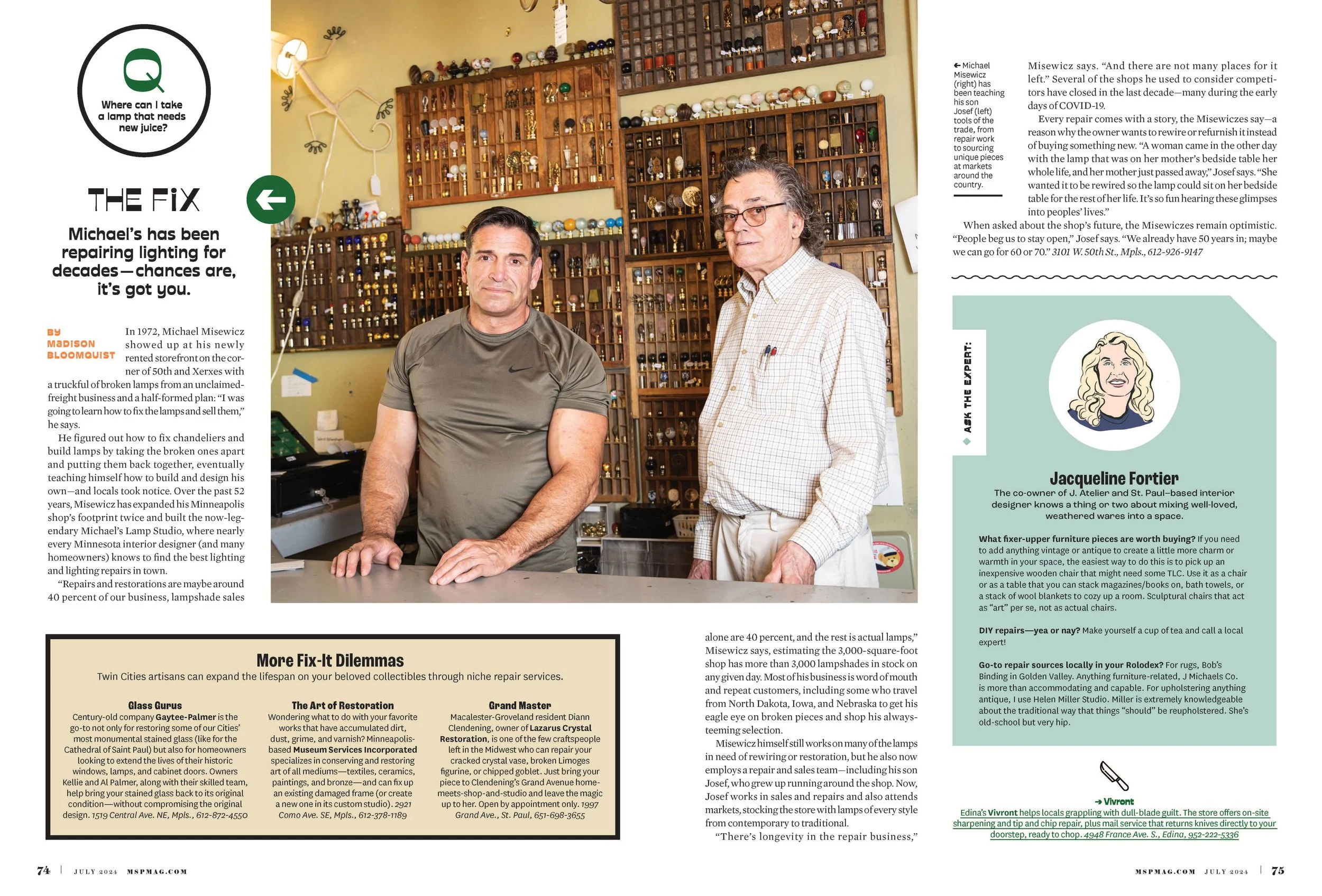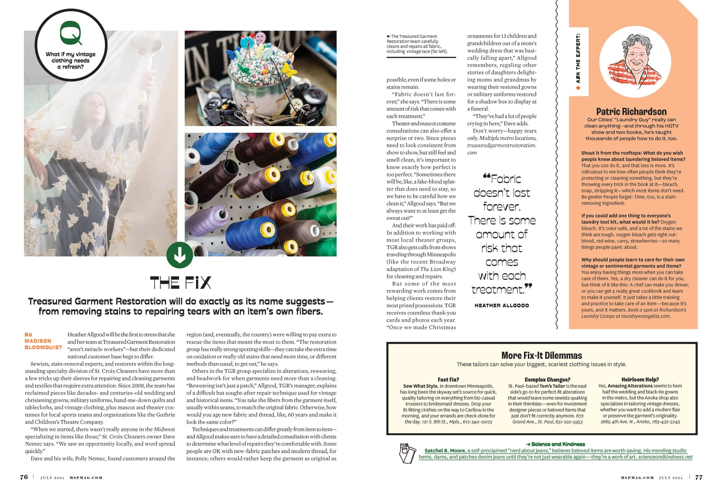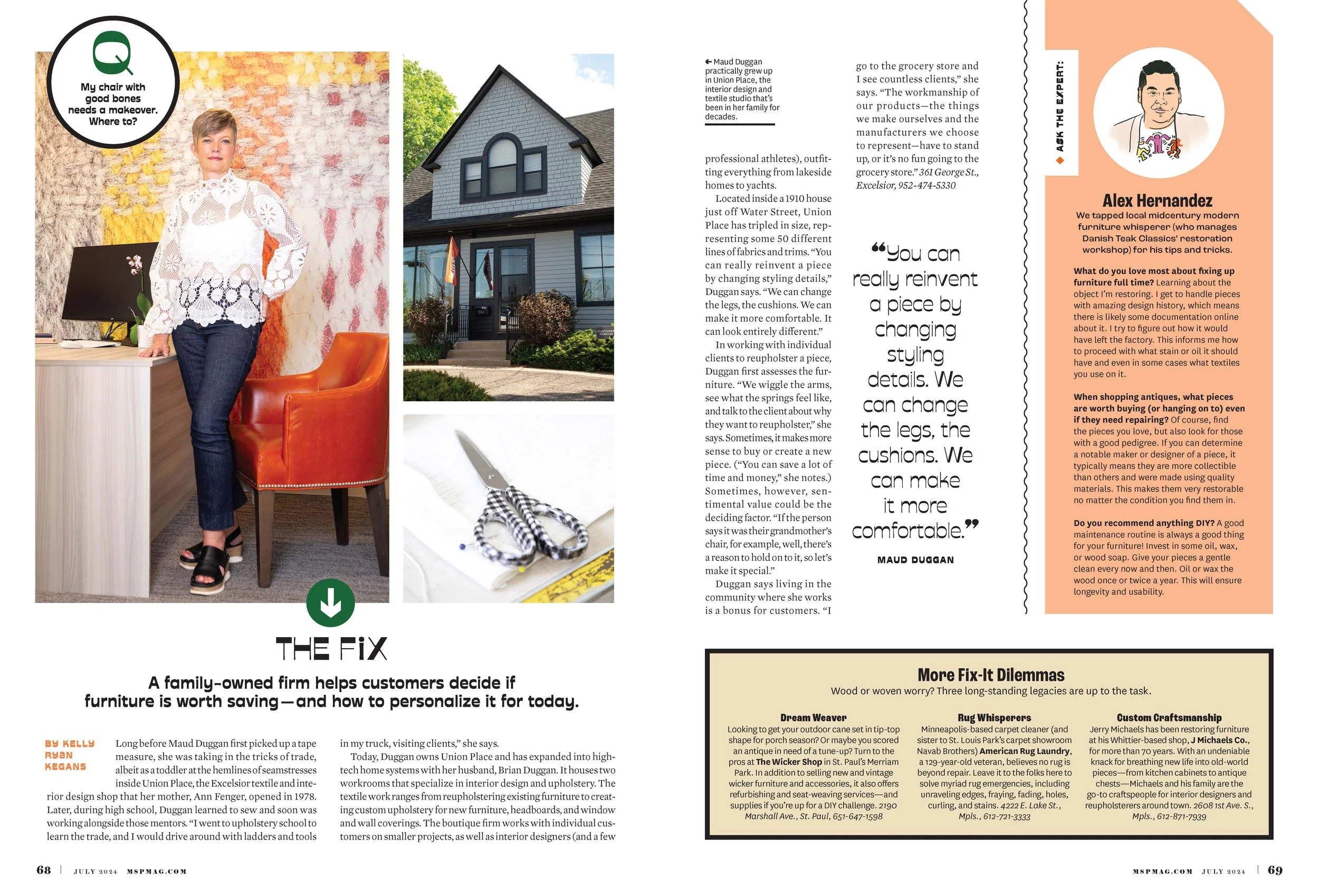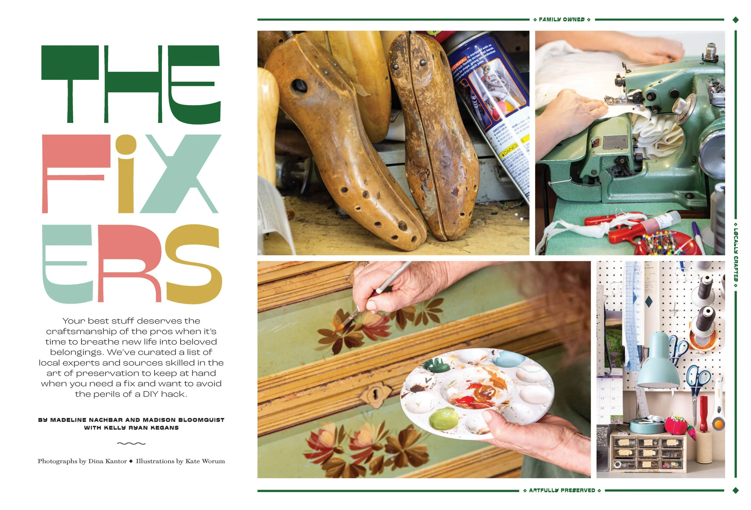 Layout and design for MplsStPaul Magazine’s feature story on local craftspersons bringing their expertise and artistic touch to services for the home and wardrobe.